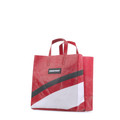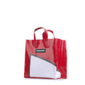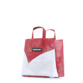 Ein kompakter Shopper/Tote im Papiertüten-Look aus recycelter LKW-Plane – faltbar, robust und alltagstauglich.